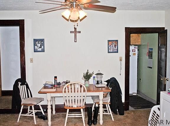 Half Brick 2-plus story home. This home has the space!!! The home boasts a very large living room, spacious separate dining room and large eat-in kitchen. The second floor features 2 spacious bedrooms with ceiling fans and closets. Third floor serves as the third bedroom and an added room for storage. Full bath on the first and second floor and a half bath in the basement, along with the laundry hook ups. The home is in nice condition and solid brick with a covered front porch.2 car detached garage also with the home. Come Tour Today!!!