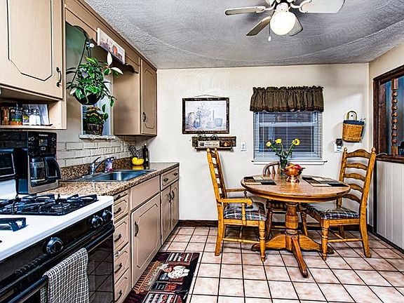 Amazing one level move in ready home!!! Beautifully appointed formal living room with laminate flooring leads to eat in kitchen with ceiling fan and tile floors. Natural light abounds the spacious family room-dining room combo with cathedral ceilings and wood stove. Sliding door leads to private yard with flagstone patio. All bedrooms have ceiling fans. Plenty of storage and built ins throughout. At the end of the day relax on the 15x7 covered porch. Store your car in the garage with plenty of off street parking.