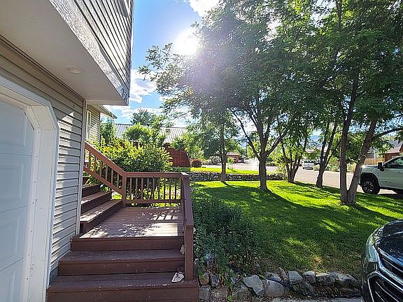 Gorgeous 5 bedroom 3 bath updated family home at the edge of the "bar hill" neighborhoods has beautiful mountain views. Located in a quiet cul d'sac within walking distance to playground and hockey rink, and near to downtown and schools. Whole home remodel in 2019 makes it feel new. Updates include kitchen cabinets/countertops, new appliances, tiled bathroom floors and showers with new vanity cabinets/marble tops, hardwood flooring, carpeted bedrooms, tiled entry, paint, insulation, etc. Spacious heated two car garage with lockable bonus room for all your specialty gear/gun safe, and a large storage shed in back with built-in shelving. Beautiful landscaping with mature trees provide an abundance of shade on those hot summer days. The fully fenced backyard has all the privacy you’ll need, stamped wood plank concrete patio and generous lawn. Master bedroom features an ensuite bathroom with double sink vanity and walk-in shower with barn-style glass door. Roomy guest bedroom has walk-in closet and private access. Oversized laundry room, on-demand hot water heater, utility deep sink and plenty of storage. The main level boasts rough-sawn hickory hardwood floor, which continues upstairs through the hall to newly carpeted bedrooms. Kitchen features stainless apron/farm sink, pantry storage, thoughtful cabinet design, and attached bar area that flows into dining room and great room. Stained solid wood doors/trim and integrated modern color palette throughout give this home a cozy feel. Come see it before it’s gone, and don’t forget to snack on some fresh raspberries from the side yard path.