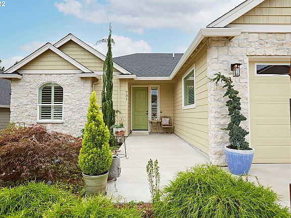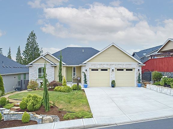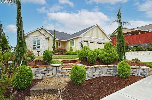 Custom home on quiet street.Sunset,territory,Oregon Hills & St. Helens lights views.Generous family room,Dng has built-in & lighted hutch,French door to deck,island kitchen offers Quartz,fully tiled wall, pantry, pot filler & all appliances.Main bdrm separate from guest rms,laundry/hobby room with good storage & built-in sink.Garage has extra deep bay for shop space.Yard has fountain,gas fire pit,crushed granite paths,flowers,gate to green space and trail.Approx 1 Mi to downtown Ridgefield.