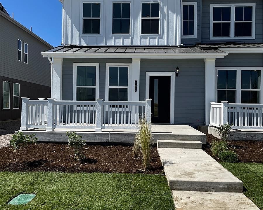 **Contact Lennar today about Special Financing for this home** - including below market rates - terms and conditions apply**Available September 2023! Low maintenance living in the gorgeous new Sky Ranch community. Just lock up and go. This brand new 2-story townhome in a 4-plex features 3 bedrooms, 2.5 baths, great room, kitchen, upper laundry, 2 car attached garage (rear alley entry) and conditioned crawl space. Gorgeous finishes and upgrades throughout including luxury vinyl plank flooring, stainless steel appliances, slab quartz counters and more. Lennar provides the latest in energy efficiency and state of the art technology with several fabulous floorplans to choose from. Energy efficiency, and technology/connectivity seamlessly blended with luxury to make your new house a home. Homes with an alley are subject to an additional $27 per quarter. Current monthly fee subject to change. Photos are model only and subject to change. This community is in a metro district.