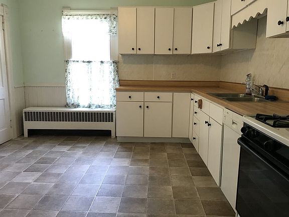 Invest your sweat equity into this house with historic elements: original hardwood floors, high ceilings, classic trim. A lot of house for a great price! 4-plus bedrooms, 1.5 baths, large eat-in kitchen, laundry on main level, hardwood floors, new kitchen and bath floors July 1, 2019. Partial shingle replacement 2018. Boiler serviced every year. Ramp at rear entrance. LARGE lot with alley access and detached 2-car garage (needs a little work). Inspections welcome but selling AS-IS.