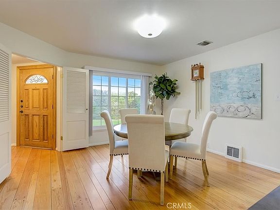 Gorgeous turn-key 3 bed, 2 bath home sitting on a 17,500 sqft lot is ready to be made yours and features a spacious 1,733 sqft floorplan, great curb appeal with lots of privacy, a large driveway, a huge private backyard, and a 2-car garage with deck above - perfect for relaxing! The interior features beautiful wood floors, recessed lighting, and lots of upgrades throughout the entire home. Enter into the living room with wood feature wall and cozy fireplace to the right of the front door and to the left is the formal dining room perfect for entertaining guests. The kitchen sits just off of the dining room and has tile flooring, wood cabinetry, granite tile countertops with matching backsplash, and a breakfast nook area. There is an indoor laundry room with tons of extra storage space and built-in cabinetry, and a door to the backyard. The primary bedroom has a private bathroom with updated walk-in shower with custom tile and bench seat. Both of the secondary bedrooms have crown molding and lots of closet space with additional built-in storage cabinets and drawers, and there is an updated, full-size, hall bathroom for the secondary bedrooms and guests to share. Enjoy the large private backyard that is ready for its new owners! Above the garage there is also a fabulous deck to enjoy and take in the sunsets! There is plenty of parking in the driveway and room to pull an RV through to the backyard with gated entry! This home is conveniently located near schools, shopping, dining, and all that Southern California has to offer!