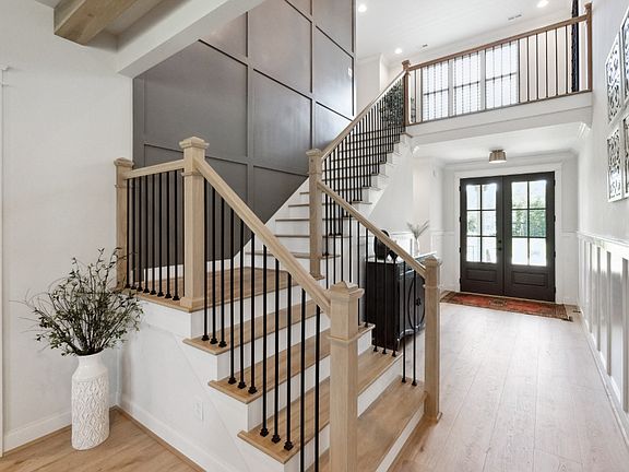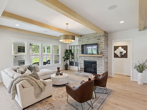 The Teesdale is a brand new plan that has great curb appeal on the outside and an open concept design on the inside. The first floor has two bedrooms, a primary suite and a flexible room that can be used as guest suite or a home office. The family room has a raised ceiling finished with a stone fireplace and lots of natural light. The large kitchen has a big island, walk in pantry, and is open to the family and dining room, making it easy to entertain. The dining area is positioned so it opens onto a covered back porch that is complete with an outdoor brick fireplace. The upper level has two additional bedrooms each with a bathroom and great closet. At the top of the stairs is a loft that provides living space for studies or fun times. This 2nd floor also features a bonus room that can be used for recreation, exercise, etc.