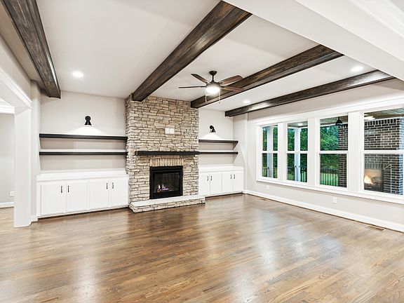 This new design takes a time tested concept and puts a modern, fresh twist on it. The split bedroom one-story design has been highly desirable for quite some time and remains a popular design style. The Blantons Trace keeps the sleeping quarters separated by the living spaces but adds today's amenities. The island kitchen is the hub of all activities and anchors the common spaces. The dining area has been located to the rear and sufficiently handles all meals - large family gatherings or small snacks. The Family Room with it's Fireplace is great for entertaining. The covered outdoor space with an outdoor brick fireplace provides extra living areas to take advantage of nice weather. A friend's entrance is perfectly located in the mud room to welcome back door guests or the kids arriving after school. The oversized Primary Suite is grand with it's vaulted ceilings, spacious bath, and walk in closet. The first floor also features 2 secondary secondary bedrooms, a secondary bathroom, and a half bathroom for guests. The upper level is finished with 2 additional bedrooms, a bathroom, and an all-purpose bonus room.