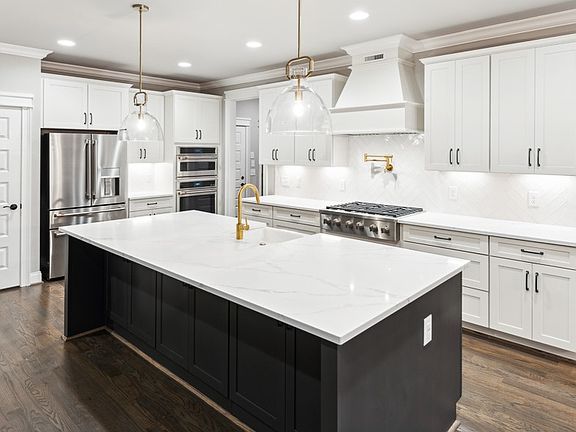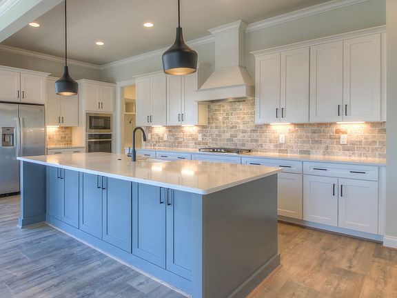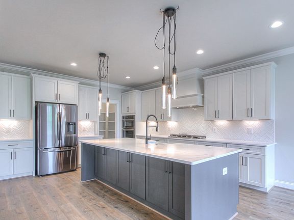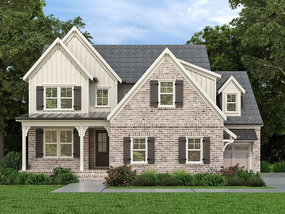 This beautiful new plan, custom designed for our newest community, Anderson Pointe, welcomes all visitors with it's charming front porch. The main level is open, filled with natural light and features all of today's must-have amenities such as the mudroom with built-ins, walk in pantry, and a open floor plan concept. The oversized kitchen has a big island, and is open to the family and dining room, which makes entertaining easy. The back porch is located right off the family and dining room and features an outdoor brick fireplace. The first floor has two bedrooms, a primary suite and a flexible room that can be used as a guest suite or home office. The 2nd floor features 3 great sized bedrooms, 2 bathrooms, and a large bonus room. The Nottingham Manor provides all of these highly desired features all in one home.