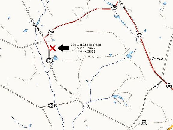 Located in northern Aiken County. The pie-shaped tract measures 11.83 acres and is partially wooded with mature pines. Adjacent and surrounding properties are principally rural single-family homes and horse farms. The property is conveniently located just 5 minutes from Interstate 20 near mile-marker 33 at the junction of SC Hwy. 39, and is only 40 minutes from downtown Columbia, SC or Augusta, GA. The tract includes a graded home site near the elevated center of the property, a 360’ deep well with 3/4HP 10GPM Goulds pump, tank and filtration system, underground electrical service provided by Aiken Electric Cooperative with a pad-mount transformer located on the property, an oversized 1000 GAL septic tank and two Premium Infiltrator Systems drain-field lines totaling 108 linear feet. Telephone and internet underground lines are in place with service provided through Comporium-Pond Branch Telephone Company. The deed to this property is not subject to any liens or mortgages, and the seller will provide deed, plat and recording at no cost to the buyer at closing. If your lender requires title insurance, that can be included at a very nominal cost to the buyer. For further information about the property, to include tax map number, a copy of the plat or to arrange a viewing, please email ricecomm@gmail.com with your telephone contact info, and we will respond promptly.