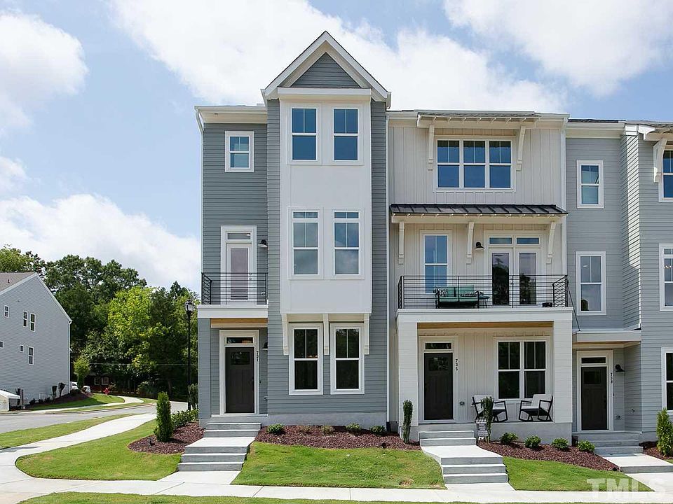 Phase four of Oakwood Townes - Contemporary Style End Unit! Charcoal and white cabinets to the ceiling in the kitchen with a waterfall white zen quartz countertop. Elongated, double sided fireplace. Statement dark interior doors. Chrome hardware and plumbing fixtures throughout. Upgraded designer lighting package. Engineered hardwoods throughout main living areas and modern carpet selections with 8 lb carpet pad in master and secondary bedrooms.