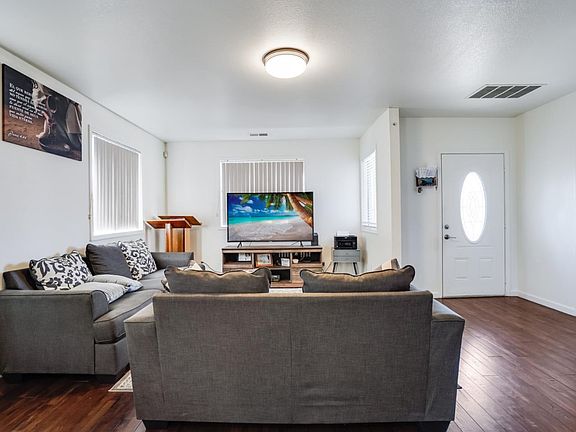 This charming home has an open floor plan with plenty of natural lights. Featuring 4 bedrooms, 2 full bathrooms, new kitchen cabinets gleaming with mosaic tile backsplash and granite countertops. Includes stainless steel appliances, gas stove/range, dishwasher, refrigerator, microwave, washer, dryer, new plank hardwood floors, laminate, and vinyl floors throughout, dual pane windows, forced air furnace, recessed lights in the kitchen, master bedroom with jet tub, fresh interior paint, new vanities in bathrooms, detached garage with carport, wrought iron security fence, storage, RV parking, fruit trees, and sprinkler system, treated wood deck in the backyard. The detached garage was converted into a 1- bedroom studio without permits. Conveniently located near schools, CCC college, public trans, shopping, and easy access to FWY. A must see!!