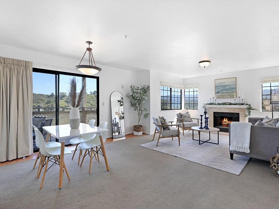 Relish the good life on the Central Coast of California! This bright, clean condominium offers some of the loveliest mountain views to be found within this centrally located, yet private complex just minutes from shops, restaurants, grocery stores, the ocean, Highway 1, Monterey Salinas Highway 68, and Laguna Seca. Ideal for a broad range of lifestyles, it features two sizable bedrooms and two full bathrooms in a layout engineered to maximize space, privacy, and views. The beautifully maintained kitchen sports warm wood cabinetry and flows into the crown jewel of the unit: the living room. With windows all around, this space is a beacon of natural light. Lounge by the fireplace and gaze out at a lush, green landscape unfolding around you. Slide open the glass doors and step out onto an expansive covered balcony. This is a wonderful spot to take your morning coffee, read a book, or gather with a group of friends or family. The primary bedroom enjoys an en suite bathroom with a tub-shower combo, while the second bathroom features a walk-in shower. The complex itself is attractive, quiet, and immaculately maintained, with a pool and spa, tennis courts, walking trails, and more. Move right into this freshly painted unit and experience unparalleled Monterey Peninsula living yourself.