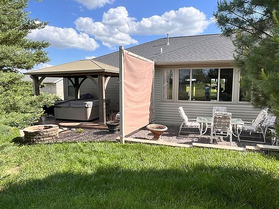 A custom built villa located at 731 Ridge Rd on the Mystic Oaks golf course just minutes from downtown Waterloo. It was built in 2017 on approximately .28 acres and features three sides brick with a hip roof, three bedrooms and three bathrooms, with approximately 2800 square feet of living space...1600 main floor, 1200 lower level. There is beautiful hardwood flooring throughout the main floor (excluding bathrooms) and it has open concept living with 9 foot ceilings and a large bank of windows overlooking the 11th fairway of the golf course. The kitchen includes Whirlpool stainless steel appliances, a breakfast bar, center island, custom backsplash, and walk-in pantry. The 8 foot sliding patio doors from the dining room lead onto the 16'x20' stamped concrete patio with a 12'x14' cedar gazebo, firepit, and a separate sitting area. The full basement has been finished with a large bedroom and walk-in closet, full bathroom and cedar sauna, large family room, and multi-purpose room. It also has a large storage area with built-in shelving. It has a finished, oversized two car garage and there is no HOA.