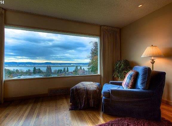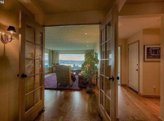 EXPANSIVE VIEW OF MT HOOD & RIVER! This 1950's charming home has tons of character. Main floor living with den, guest rm, utility/mud rm and Master. Kitchen has been updated; bathrooms are Retro. Home makes great use of large decks for entertaining. Daylight basement has bonus rm w/ wet bar and 2 more bedrooms/bath. Mature yard to enjoy lots of gardening. Detached 8x10 heated studio. Great access to Portland and PDX (10 min).