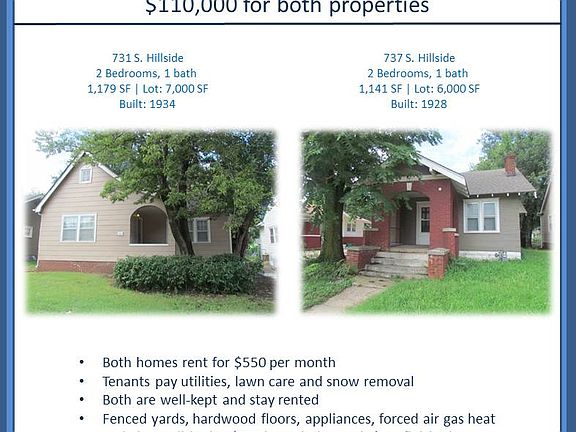 This 1179 square foot single family home has 2 bedrooms and 1.0 bathrooms. This home is located at 731 S Hillside Ave, Wichita, KS 67211.
