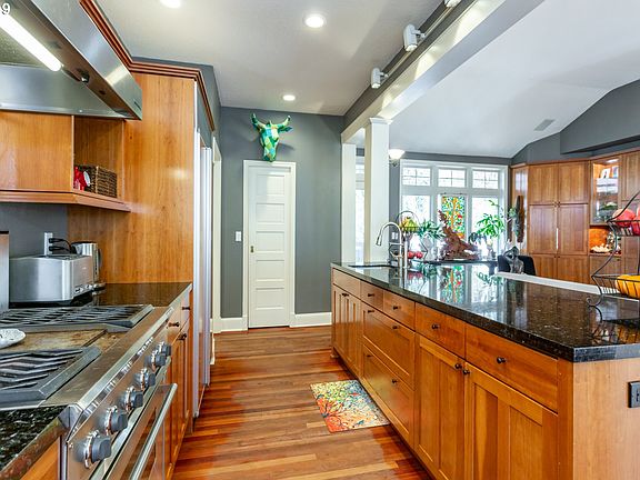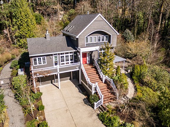 Welcome to your private paradise! Remodeled down to the studs in 1993, no detail was missed and no surface left untouched. The custom design includes a perfect primary suite on the main floor connected to a study/sitting room with a cozy fireplace. The gourmet kitchen is fully loaded with top-tier appliances including a built-in Sub Zero refrigerator, custom range hood, and Bertazzoni professional gas range-and of course a wine fridge! The kitchen is open to the spectacular living room with another fireplace, tons of windows, and an eat-at bar that's just perfect for entertaining. Downstairs there's a spacious bonus room, full bathroom, and bedroom with walk out access to the yard, and upstairs are two bedrooms anchored by a full bathroom. Throughout the house you'll find top-quality finishes and updates like Brazilian cherry hardwoods, granite slab counters, custom built-ins, California closets, and a new composite wrap-around deck. All of this nestled on half an acre artfully combining forest flora and manicured landscaping, including a gorgeous backyard pond and waterfall. It's easy to feel connected to nature when you're surrounded by beautiful trees with not a neighbor in sight! Close to downtown and OHSU, your private paradise is just minutes away from fantastic restaurants, groceries, cafes, and more. [Home Energy Score = 4. HES Report at https://rpt.greenbuildingregistry.com/hes/OR10151661]