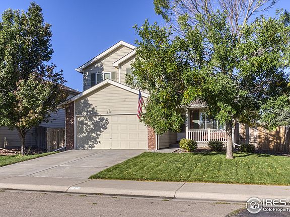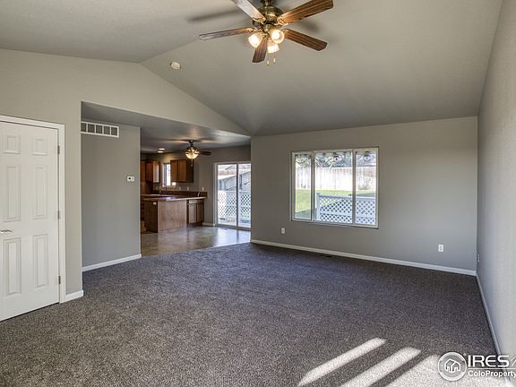 Located across the street from open fields and Milliken Recreational Center, this two story home offers vaulted ceilings, a fully finished basement, and a master suite. Owner has just installed brand new carpet and fresh interior paint throughout, making this turn key property feel refreshed. Enjoy evenings on the large concrete patio with built in sunshade and sprinklered backyard. Utilize the sides of the home for storage or potential dog run.