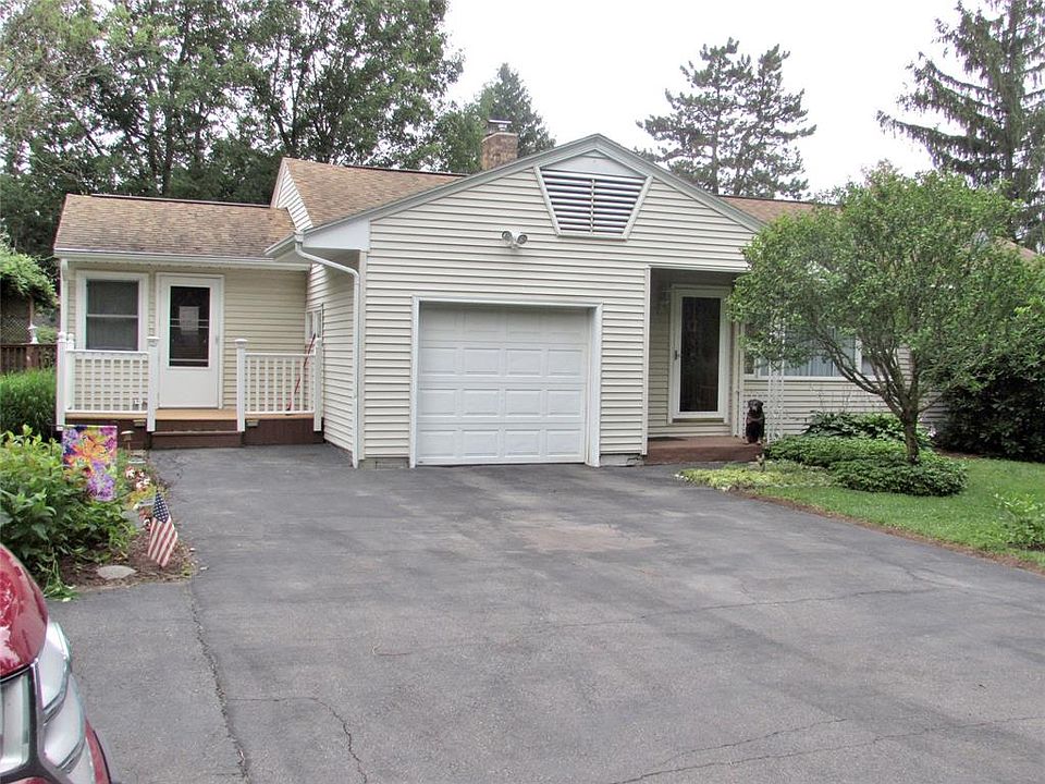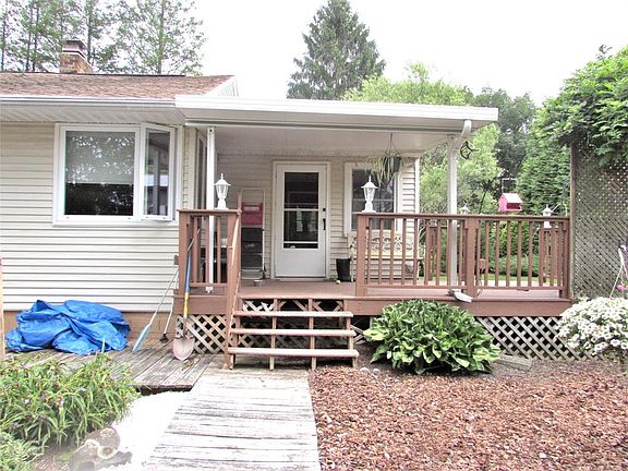 BEAUTIFUL COUNTRY RANCH HOME surrounded by landscaping, gorgeous flower gardens, and level, 210' deep backyard, large kitchen and eating area, nice wood built-ins and oak floors underneath carpeting, bluestone fireplace with a gas insert in the living room, lovely sunroom/family room to enjoy the views, next to the open deck, replacement windows, enclosed porch or mud room, full basement space, ready to be partially finished. Small pond with fish, on 1.2 acres of land, in a great location, close to everything! Just 15-20 minutes to downtown, or routes 81 and 86. Welcome Home!