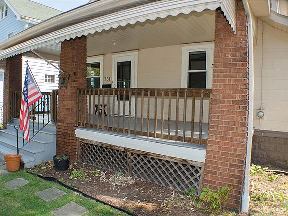 Welcome to 731 Thayer St. Charming Colonial with 4 bedroom, and 2 full baths. The 1st Floor features, Living room with vent less gas fireplace, beautiful natural wood work, 1st floor bedroom and 1st floor full bath. Formal Dining room with wood floors, beautiful natural wood built-in china cabinets with glass door, plus large draws for storing linins and more. Kitchen comes with the refrigerator and is set up for gas range (current range is tenant, the one that comes with the house is currently being stored in the garage). Tall upper cabinet increase storage space for the kitchen. 2nd floor features, master bedroom comes with window A/C unit and an on suite full bath with updated vanity. There are 2 more bedrooms on the 2nd floor making a total of 4 bedrooms. Inviting covered front porch was recently painted. Front side porch was built in 2005 and new railing on the front porch were done at that time too (see MLS # 3224492). Full basement with glass block window and includes washer and dryer. Out back there is a 1.5 car garage with electric service and door opener and a partly fenced in back yard. Replacement windows throughout the house and both the front door and kitchen door as part of Akron's Lead Hazard Reduction program see attached documents