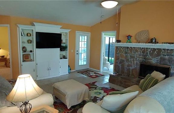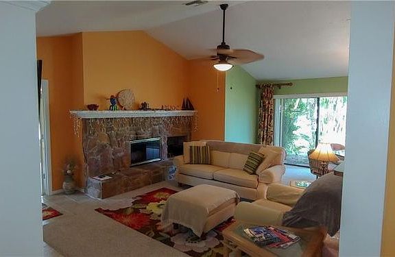 This well maintained villa offers one of the best private settings in the community. The volume ceiling creates a large open entertainment area with wood burning fireplace for those cool evenings. Den could be used as an additional bedroom.Property card reflects the wrong number of bedrooms.