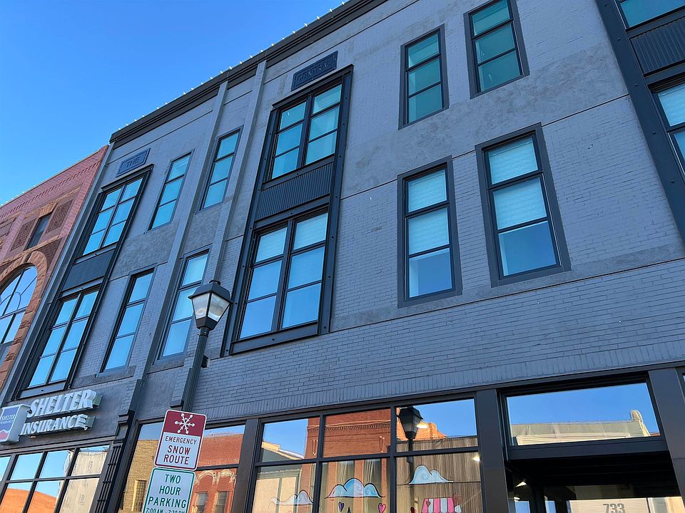 WOW!! TAKE A LOOK AT THIS SPACIOUS LOFT CONDO BUILT FROM NOTHING BUT BRICK WALL STRUCTURE! This Condo is only 2 1/2 years remodeled by Cardinal construction with lots of amenities, new windows, all walls, sheetrock, flooring, fixtures, modern open floor plan with all new kitchen appliances, glass electric fireplace, new hot water heater, washer and dryer, walk in closets, mailbox private entry with security system, ground floor 2 car garage with entrance from alley entrance with elevator to 2nd level. Outdoor private patio facing city parking lot has bench and tv mount on wall for private parties or quiet time and fresh air! Primary bedroom has large bath with walk in closet and 2nd bedroom and laundry room with lots of storage all on same level. High ceilings with canned lighting and fireplace located in large combo living/dining room with large granite island in modern kitchen with stainless steel appliances. Taxes may vary for 2022. Perfect downtown living with lots of shops and eating places within walking distance. Currently vacant. Finished construction in approx. 2020-2021. Don't miss this great opportunity!! Call for a private tour.