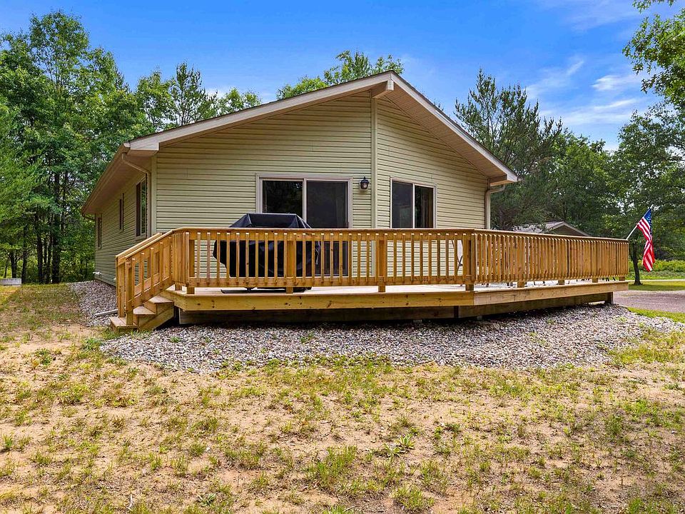 Welcome to your dream oasis nestled on 4.67 beautifully wooded acres w/end-of-the-road privacy & wildlife galore. This enchanting home offers the perfect blend of modern comforts & natural beauty. Perfectly appointed & turn key w/all furnishings, appliances, kitchenware...what you see is what you get! The open-concept design seamlessly connects the living, dining & kitchen areas, creating an inviting atmosphere for family gatherings/entertaining. Finished lower level offers relaxation room with a large family room, game room & bonus room & full bath. Primary en suite is a quiet retreat. Outside you'll love the wrap-around deck & 2-car garage. Lake Arrowhead Certificate available. ATV friendly area, convenient to Rome's Lakes Area, Petenwell Lake & the prestigious Sand Valley Golf Course!