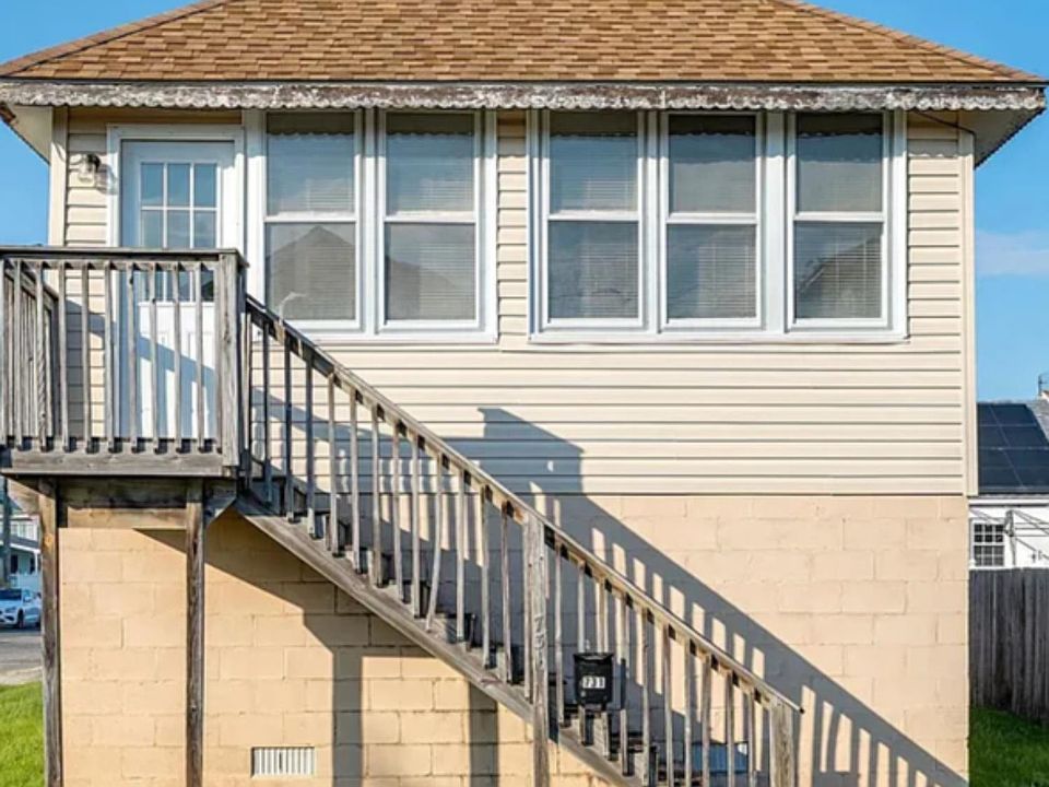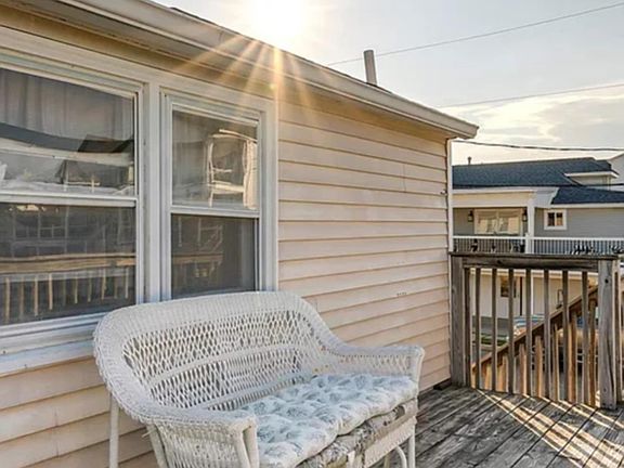 Single family raised Beach Cottage on large corner lot offering two bedrooms, one full bath with terrific outside living space with two decks, water view, private backyard, wide driveway, plenty of off-street parking. First floor is currently used for storage. With a little TLC and endless possibilities, you can make this your summer vacation home. Also, ideal location for much family fun. Close to shopping, restaurants, boardwalk, sightseeing, entertainment and beach/bay. Property being sold "As-Is".