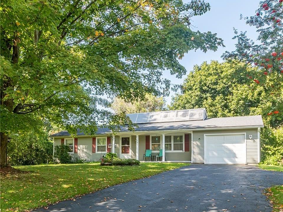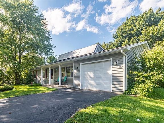 Showings only during open house. SPRAWLING 3 bedroom vinyl sided RANCH HOME on large lot backing to woods! Eat in kitchen with abundance of cabinets and counter-tops! Spacious eating area with sliding doors leading to a WONDERFUL Screened Porch that leads to the private rear yard! Large Living Room with triple window for natural light. Full Basement, Covered Front Porch. Blacktop driveway with turn around leads to the oversized 1 car garage. All this and just minutes from Webster!