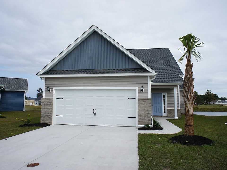Open the front door and enjoy the beautiful view of the pond beyond, framed by double windows in this custom floor plan home in the new Ocean Palms community on a premium cul-de-sac lot on the pond. This home was designed specifically for this lot and will be the only one of its kind. This terrific 3 bedroom, 2 full, and 2 half baths, open floor plan home will have upgraded waterproof LVP flooring throughout entire home. Stainless appliances, staggered-height grey Shaker-style cabinetry, quartz counters, a corner pantry and a convenient breakfast bar combine to give the kitchen the wow factor you're looking for, and the abundant recessed lighting, 2 sets of double windows and slider in the great room flood the room with light and are positioned specifically for the view. The slider leads to a screened porch with a large separate patio, to take advantage of the beautiful pond view. The spacious master retreat features quartz counters, double sinks, oversized walk-in shower, plenty of storage in the cabinetry and linen closet, plus 2 walk-in closets. Two large additional bedrooms are located upstairs. Guest bedrooms are separated by a Jack and Jill style bathroom, each with it's own half bath and with a shared tub/shower combo, featuring quartz counter tops. All of the homes in Ocean Palms come standard with the luxury of natural gas (tankless water heater, gas heat and a gas range). This home will have irrigation system. The garage is completely trimmed and painted, with floored attic space accessed by drop-down stairs. Ocean Palms is conveniently located near shopping, restaurants, schools and world class medical offices and hospitals, and a short golf cart ride to Surfside Beach's gorgeous beach and the Atlantic Ocean. Other floor plans and inventory homes may be available, and CUSTOMIZATION OF FLOOR PLANS IS POSSIBLE!!! Community pool and cabana now open! Photos are of a completed, similar home and may have different features.