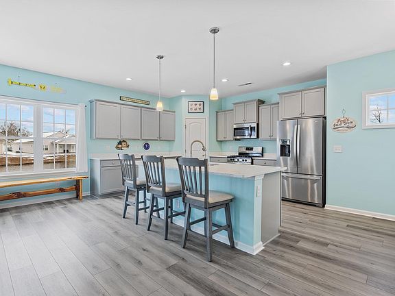 Step inside and be greeted by a breathtaking view of the tranquil pond beyond, framed perfectly by double windows in this custom-designed home located in the sought-after Ocean Palms community. Situated on a premium cul-de-sac lot, this home is crafted exclusively for this location, making it truly one-of-a-kind! Just a short golf cart ride away to the beach!! With 3 spacious bedrooms, 2 full baths, and 2 half baths, this open-concept home boasts stunning upgrades throughout. The entire home features luxurious waterproof LVP flooring, offering both durability and elegance. The kitchen is a showstopper, with stainless steel appliances, staggered-height grey Shaker-style cabinetry, quartz countertops, a corner pantry, and a convenient breakfast bar—creating a space that's both functional and impressive. Recessed lighting, two sets of double windows, and a slider in the great room flood the space with natural light and draw your attention to the picturesque views outside. The slider opens to a screened porch and a large patio, ideal for savoring the pond’s beauty. The master retreat is a true sanctuary, complete with quartz counters, double sinks, and an oversized walk-in shower. Abundant storage is found in the custom cabinetry and two expansive walk-in closets. Upstairs, two generously sized guest bedrooms share a Jack and Jill bathroom, each with its own half bath and a shared tub/shower combo, all accented by quartz countertops, and linen closet across in Jack and Jill bathroom suite. All bedrooms have ceiling fans installed. This home also embraces the luxury of natural gas—equipped with a tankless water heater, gas heat, and a gas range. The garage is fully trimmed, painted, and includes floored attic space with convenient drop-down stairs for extra storage. The seller had installed additional gutters on the home to enhance drainage and protect against water damage. Ocean Palms offers unparalleled convenience, just minutes away from shopping, dining, top-rated schools, and world-class medical facilities. Plus, it’s only a short golf cart ride from Surfside Beach and the sparkling Atlantic Ocean. This is coastal living at its finest—luxury, comfort, and natural beauty all in one.