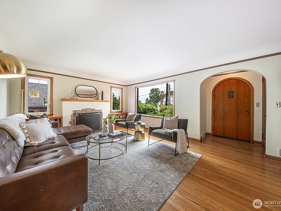 Welcome to this quintessential brick Tudor located in Ballard! This charming abode offers a sun-soaked living room with wood-burning fireplace & custom built-in shelves and a spacious formal dining room. A kitchen with dining nook + new countertops, backsplash and updated appliances. The main floor is complete with a bedroom + full bathroom; great for a home office or guest bedroom. Upstairs you'll find 3 more bedrooms, including a spacious primary bedroom with views of Elliot Bay/Puget Sound & Mountains! A finished basement with flexible living spaces offer endless possibilities. Don't miss the private backyard oasis with a detached studio (with power!)! All of this and more within walking distances to parks, schools, restaurants & more!