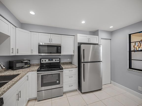 ''Great Views'' Remodeled kitchen & baths in 2019, Beautiful 7th floor unit with great views from the Primary bedroom and your private enclosed patio overlooking the lake and golf course. Large Primary bedroom with walk-in closet and in suite bathroom with walk in shower. Laundry in unit.Tiled with white 18'' tiles in all rooms. Located in Guard gated Huntington Lakes of Delray beach, 2 beautiful clubhouses with lots of activities including outdoor pool and tennis courts. Virtually Staged photos shown. Close to shopping, downtown Delray beach, major highways, beaches, movies and restaurants.