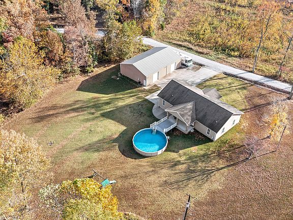 Enjoy the drive to this beautiful 3 Bedroom/2 Bath home located down a scenic gravel dead-end road that sits on a 2.85-acre lot. The large living room features a cathedral ceiling. All bedrooms are located on the main level & primary bedroom features a tray ceiling, a walk-in closet, a two-sink vanity, a tiled walk-in shower, and a jetted tub. The kitchen includes loads of storage space and an eat-in dining room perfect for a large table. At the rear of the house is a small office area that leads to the bonus room upstairs. French doors lead out to a covered back porch with outdoor ceiling fans and an attached deck leading to the 30ft above-ground saltwater system pool. The detached 40X60 garage has a built-in office with a half bath and its own septic system. Crawlspace encapsulation.
