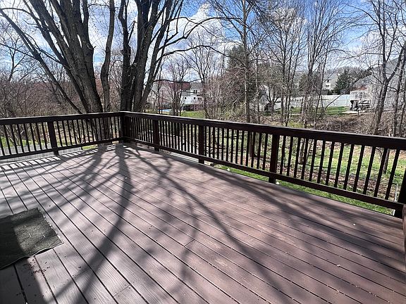This charming townhome features an inviting front porch, hardwood floors, and a spacious deck that overlooks a large fenced-in yard backing to a peaceful stream. The property also includes a shed for extra storage, an additional parking pad, and off-street parking for convenience.