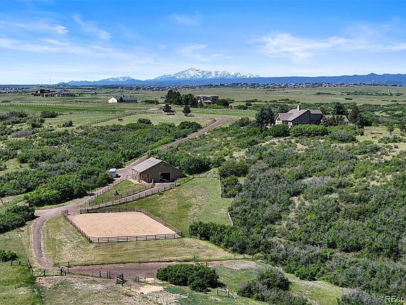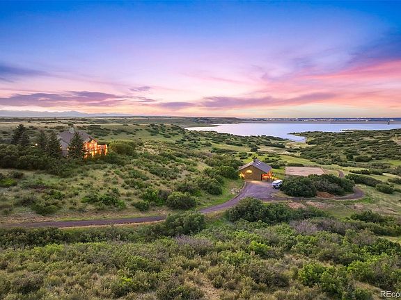 A once-in-a-lifetime setting overlooking and bordering the Rueter-Hess Reservoir with mountain views from Longs Peak to Pikes Peak. Never before offered, this home is just one of four properties that will ever have the privilege of direct hiking access to the lake for boating, paddleboarding, and fishing. Encompassing 17.5 acres, this property is a paradise for horse enthusiasts, featuring a 3-stall barn complete with a heated tack room, laundry facilities, and feed room, plus an expansive 80x180' arena and four pastures. Minutes from Castle Rock or Parker, the gated community ensures privacy and security. If you love mountain views, water, solitude, and wildlife, you’ve come to the right place!