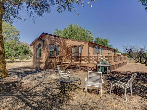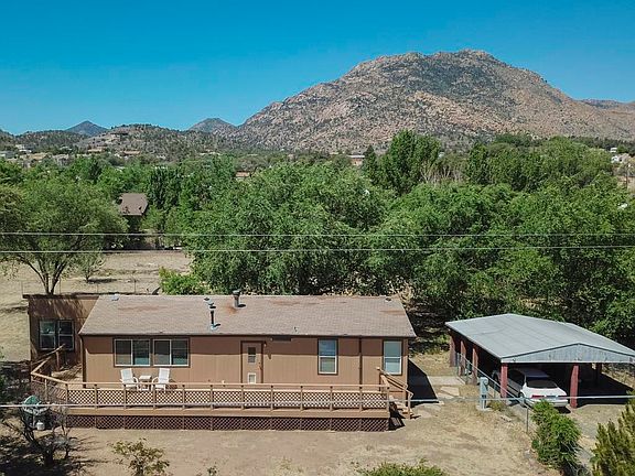 Country Charm on 1+ acres, w/ Granite Mountain views. Darling home located in a rural neighborhood- NO HOA. Fantastic well,15 gpm in 2008. 1286 sq ft, 3 bedroom, 2 bath bright, light home. Kitchen has newer laminate flooring, sunny breakfast nook. Open living room & formal dining area. Large Master Master and bathroom w/ soaking tub & walk in shower. 2 sizable guest bedrooms share full bathroom. Newer laminate in bathrooms & laundry room.The open deck at the front of home is a cherished spot to enjoy the summer, plenty of shade trees surrounding entire home. Trees on property - peach, apple, oak, elm and catalpa. Perimeter fenced, & cross fenced. Detached 2 car carport. RVs, trailers OK. Great 1st home, investment property.Home has been relocated, see docs for lender information.