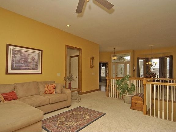 Reverse 1.5 story in Estates of North Brook. Lots of new and updated systems throughout over past two years - HVAC, whole house humidifier, water softener, network ports, Google Fiber, windows in great room and downstairs bedroom, kitchen slider w/ blinds, roller drawers & lazy Susan in kitchen cabinetry, security lighting, privacy tint on windows, microwave and dishwasher. Custom storage in two bedroom closets plus great storage room with shelving and access doors to backyard. Inground sprinker system & fenced.
