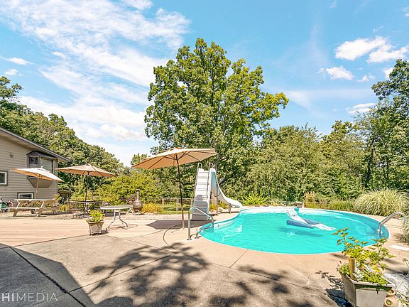 Fabulous home on a private, wooded almost 3 acre lot! This home sits on a private cul-de-sac road. Lots of mature trees as you ride up the large driveway w/plenty of parking. Unique in every way, this is not your typical house! Large living room or could be dining room w/wood burning fireplace & built in shelving with HW flooring. Updated kitchen w/ cherry cabinets w/crown molding , SS appliances, granite counters & backsplash + skylite. Bright eat in area w/lots of windows. French doors to cozy FR w/2nd FP. Upstairs offers primary bedroom w/slider to balcony w/beautiful views of the wooded backyard. 2 walk in closets & private bath w/double sink vanity, soaker tub & separate shower makes a wonderful primary suite. 2 secondary bedrooms on 1st floor w/full bath. 1/2 bath w/exterior access to walk straight out to the patio & pool! (no water dripping t/o the house!) Lower lever offers 4th bedroom or could be great office w/door to screened porch & view of the wooded lot. Never leave for vacation when you have your own in ground pool or relax & enjoy the wildlife & nature all around you! 3 car garage w/32' X 15' workshop & wood burning heater. Almost all windows & doors replaced. Roof replaced. Whole house water filter & reverse osmosis. All major components of the home replaced. Call for more details. Don't miss out! Owner has taken great care of this home. Come & check it out! See it, love it, buy it!