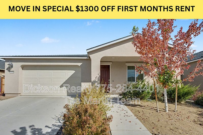 7310 Overture Drive AVAILABLE NOW! MOVE IN SPECIAL: $1300 OFF OF FIRST MONTH'S RENT! This single-story 3-bedroom, 2-bathroom home in Golden Valley, Reno offers a flexible floor plan with a formal dining room that could also serve as a study or home office. The spacious great room features a kitchen with dark cabinetry, center island, pantry, and space for a dining table, opening to a nicely sized living room with sliding doors to the backyard. With 12 solar panels, the home is designed to help offset electricity usage. The primary suite includes a generous walk-in closet and bath with double sinks, bathtub, and walk-in shower, while the two additional bedrooms share a full bath with a shower/tub combo. A laundry room with washer and dryer for tenant use, plus a two-car garage, add to the convenience. Ideally located near shopping, eateries, and parks with easy access to 395. Pets are welcome with owner approval. Schedule a tour today! Tenant Responsibilities & Fees Utilities: Garbage & Sewer: $89 Water and Power: tenants are responsible Rent: $2,695 Security Deposit: $2,795 One Time Administrative Fee: $195 **For properties that allow pets, the additional fees below may apply: Additional Deposit - $500 minimum per pet Pet Rent - $35.00 per pet per month One Time Pet Onboarding Fee - $150.00 per pet All residents are enrolled in the Resident Benefits Package (RBP) for $55.00/month which includes liability insurance, credit building to help boost the resident's credit score with timely rent payments, up to $1M Identity Theft Protection, HVAC air filter delivery (for applicable properties), move-in concierge service making utility connection and home service setup a breeze during your move-in, our best-in-class resident rewards program, on-demand pest control, and much more! More details upon application. Owners typically accept applicants with a 650+ credit score and a combined monthly income of at least 3x rent. Questions? Property Manager: David Martin License #:S.66470 | PM.163830 Amenities: 2 car garage, solar panels