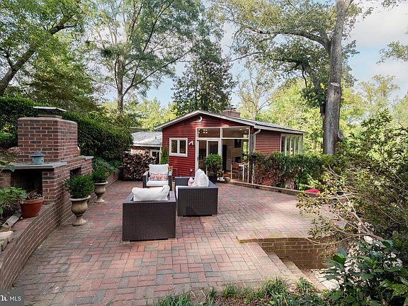 Beautiful Mid-Century Modern home designed by renowned architect Charles Goodman in desired Hollin Hills. Treetop views on private .44 acre lot across from parkland. Walking distance to pool, tennis courts. Only minutes away from the Beltway and Old Town...but seems a rare, calm oasis in Northern Virginia. Enter into home with light-filled family room with wood-burning fireplace, hidden storage closets, full bathroom and separate laundry room. Stairs to bedroom level with three large bedrooms and second full bath. Vintage Nelson Bubble lamp leads to open upper level with floor-to-ceiling windows, refinished hardwood floors, second wood-burning fireplace (above-roofline chimney rebuild in 2020) in living room with slate tile surround, separate dining room, updated kitchen with new quartz countertops and bar seating, replaced stainless appliances and new lighting. Hallway attic access with attic fan. Tiered outside living areas include side patio with rebuilt brick wall, brick patio through sliding glass doors in dining room to large outdoor entertaining area with huge outdoor fireplace. Don't forget to take the steps up to top of property with studio/ workshop (Wi-Fi accessible with router booster-ideal for remote work...or quiet contemplation) with electricity, glass floor-to-ceiling windows and secret patio/garden area. Cleared ascent presents an ideal palette for the inspired gardener (original plant materiel blueprints by esteemed era landscaper Dan Kiley available upon request for the aficionado); tiered landscaping and small destination paths/landings would take the property to showcase level. Some of the additional updates include new HVAC system, freshly painted throughout, gorgeous refinished oak hardwood floors, new roof (2018).