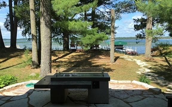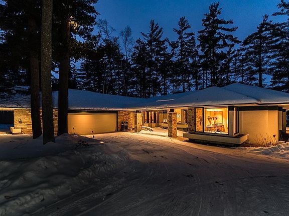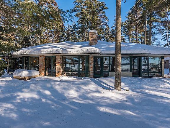 Nestled among towering pines/101' shoreline/nice sand lake bottom/level elev./lakeside patio/spectacular sunsets/this Charles R. Stinson, Architect custom designed lake home comes furnished & boasts a soothing ambiance & amazing views through walls of floor-to-ceiling glass/beautiful 2-sided flagstone gas fireplace/in-floor heat/limestone flooring/abundant built-ins & storage throughout/tray cove lit ceilings/gourmet kitchen: granite-SS appliances-breakfast nook-custom cabinetry-breakfast bar-walk in pantry/spacious dining area/deluxe owners suite: luxurious bath (dual-head steam shower-jetted tub-dual sink vanity) & large walk-in closet/bedrooms are lakeside-outdoor access/two guest rooms: one is ensuite w/ walk-thru bath & Murphy bed, the other has a fireplace & built-ins/den-sleeping space/cozy bunkbed room/attached heated garage/33x64 det. garage includes a heated workshop/covered patio entry/delightfully landscaped: perennials and a fish pond/breathtaking parcel…truly spectacular!