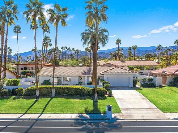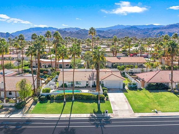 HIGHLY SOUGHT-AFTER SOUTH PALM DESERT POOL HOME! This charming home boasts 3 bedrooms, 2 bathrooms, approx 2,663' of living space on an oversized 11,761' sq.ft. lot. Once you enter the home you'll admire the light, bright and airy feel while taking note of the pride of ownership this home displays. You can enjoy a formal dining room, step down living room with vaulted ceilings and a cozy fireplace. The kitchen features a walk-in pantry and opens to the family room that has custom built-ins and access to the front entertaining pool area. All bedrooms have a spacious walk-in closet, the owners suite has a bonus retreat area with access to the backyard. One of the guest bedrooms also has access to the backyard/covered patio. The house is set back and elevated on this prestigious street with NO neighbors in front of you and NO HOA! Take in the gorgeous views of mountains and palm trees in the front and backyard. Only blocks away from The Living Desert Zoo and the El Paseo Shopping & Dining experience which is the 'Rodeo Drive' of Palm Desert! Don't miss your opportunity to own this home!