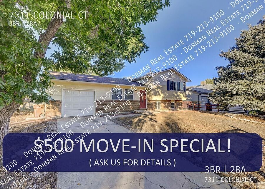 The owner of this property is offering a special incentive of $500 off the first month of rent! Please contact us if you have questions. Charming home located on a cul-de-sac with a fenced backyard and mountain views. Kitchen has slab granite counters, tile floors, stainless appliances, with an eat-in dining area. A walkout to the covered patio and rear yard off the dining area. This home features two living rooms, three bedrooms and two bathrooms. The lower level features an office space, laundry and second bathroom. Conveniently located close to Fort Carson, I-25, shopping, entertainment, and schools with easy access to Powers Corridor and Peterson and Schriever AFBs. Please check out our application handbook by copying and pasting the link below in your web browser http www . dormanrealestate. com /preapplicationpacket Please read Carefully. Please remove spaces when inputting in your web browser COLORADO HB23-1099 DISCLOSURE: PROSPECTIVE TENANTS HAVE THE RIGHT TO PROVIDE TO DORMAN A PORTABLE TENANT SCREENING REPORT, AS DEFINED IN SECTION 38-12-902 (2.5), COLORADO REVISED STATUTES; AND IF THE PROSPECTIVE TENANT PROVIDES DORMAN WITH A PORTABLE TENANT SCREENING REPORT, DORMAN IS PROHIBITED FROM: 1) CHARGING THE PROSPECTIVE TENANT A RENTAL APPLICATION FEE OR 2) CHARGING THE PROSPECTIVE TENANT A FEE FOR THE LANDLORD TO ACCESS OR USE THE PORTABLE TENANT SCREENING REPORT. While Dorman does accept compliant portable screening reports as defined by HB23-1099, which would result in no application fee being required (or possibly an application fee refund), we do still require that all tenants complete our application (click APPLY next to any property on our list of properties below). Additionally, you will be deemed qualified (or not) based on the screening information/data provided on our independently pulled report, not based on information/data on your portable report. Please note that bona fide and compliant portable reports MUST come directly from the consumer reporting agency. 2 Pets