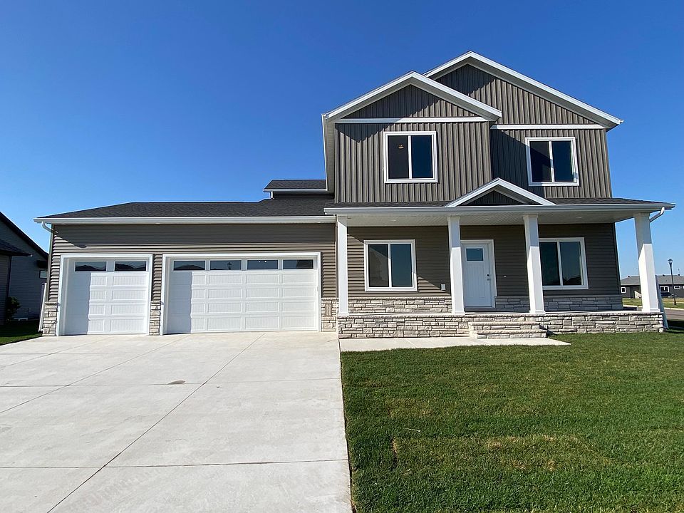 Pre-Sold Wyndom Plan - 5 bed/4 bath 2-story located on a big corner lot in Eagle Pointe. The open concept main floor features a big living room w/beautiful gas fireplace, a pantry off the kitchen/dining room, half bath and an office. Custom cabinets/quartz countertops in kitchen and all baths. Upstairs you will find 3 bedrooms, 2 bathrooms & laundry room. The Primary bedroom has a maintenance free deck, huge walk-in closet, private bathroom w/double sinks, walk-in tiled shower w/glass surround and a separate soaker tub! The finished basement includes a family room, 2 more bedrooms and 3/4 bath. The oversized finished 3+ stall garage is fully insulated, has a floor drain, roughed in for a gas garage heater and is plenty big enough to store your toys. Owner/Agent