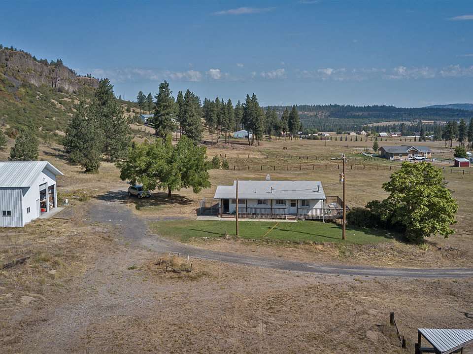 Come check out this 1959 farm house, remodeled in 2019. This property rises up to give a commanding view of surrounding acres w/room to grow. The basement has a furred in bath & outside entry. Some very impressive outbuildings are: Large indoor riding arena which is 175 x 100 on the outside with an inside 95 x 74 arena w/13 horse stalls & plenty of room for hay. The shop is 40 x 30. Property is fenced & crossed fenced. Besides in the stalls and barn, there are 6 paddocks. There is an outside jumping arena.