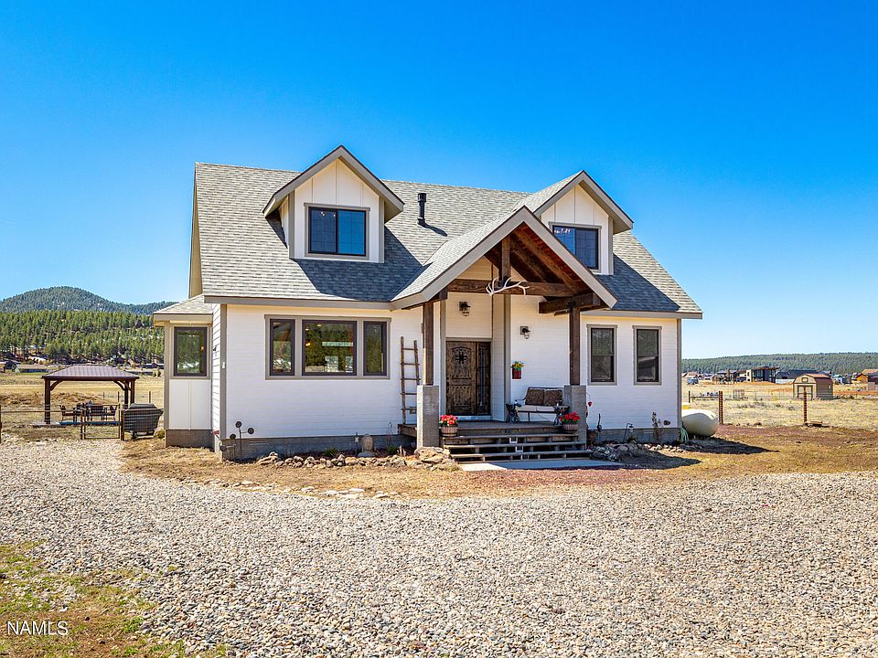 Gorgeous storybook home with views, views, views! This home has been upgraded with custom designer style of French country charm on 2 acres. See the attached list of all of the recent upgrades and improvements, making this property ready for you. This home showcases an entire upper level primary suite has been completely remodeled with a soaking tub, stone tile shower, walk-in closet, picture frame windows, chandeliers, and a corner stove. The main level has an open floor plan kitchen/ living room area, lovely dining nook, two bedrooms, and a remodeled bathroom. Bring your horses and skis and get ready to enjoy the best of Flagstaff country lifestyle. Just minutes from downtown and directly across from Snowbowl skiing and Forest service hiking and biking trails. See all supplement info. 7311 N. Snow Bowl Road - Additional Improvements List 2024