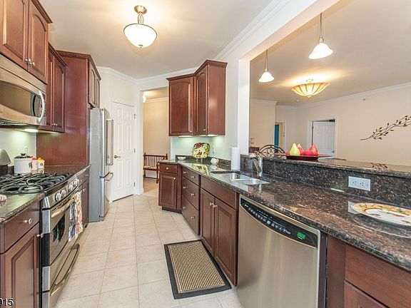 Welcome Home to the most Desirable floor plan in a prime location in 55+ Active Adult Community. Only Corner Condo in Community on Market !! Top Floor with no neighbors above you ! Open Floor Plan boasts Spacious 27ft. Living area w/ Dining Room adjoining is great for Entertaining. Enjoy morning coffee or wind down with the evening sunset on the Large covered terrace with view of trees. Kitchen has Separate dining area, SS Appl.,& Granite counters w/ breakfast bar & pass-through to the living area that enhances the open & airy feel . The primary bedroom suite is a private retreat w/ 2 Walk-in closets, providing organized storage space, & Large bathroom w/ double granite vanity,& walk-in shower. Guest wing w/ 2nd Bedroom &Full Bath. There is a good-sized Den/Office. Many windows w/ generous amount natural light. An Assigned Parking Space in Garage & a Storage Unit. Just a short walk to the Beautiful Upscale Clubhouse-16,000 sq. ft. with it's Resort like Amenities- Indoor Pool & Sauna, Fitness Center, Aerobics/Dance Room, Game/Card Rooms, Art Studio, Banquet Room, & MORE! Large Outdoor Pool, Picnic Pavilion w/ gas grills, Tennis/Pickleball Courts, Walking Paths,& Community Garden. FULL Social Calendar. Gated Community in a Parklike neighborhd setting. Convenience is key- Nearby Mall, Rt. 80, Shopping, Restaurants, Dr. Offices, NY Transp, Golf, & Parks. Embrace an Active Lifestyle in a Community that offers Many Amenities & Activities for a fulfilling & enjoyable life.