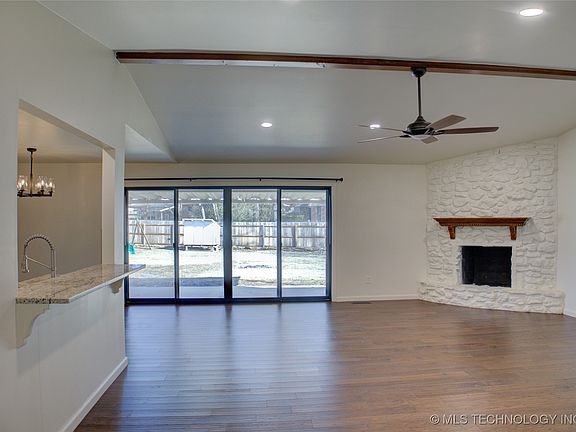 Beautifully remodeled home behind Thoreau off 71st St. between Memorial and Sheridan. The home has new wood engineered floors throughout (even in bedrooms), new windows, new sliding back doors, new bathrooms including cabinets, sinks, hardware, faucets and tile. Kitchen is new with the opening to the family room, new cabinets, hardware, faucets, appliances (gas range with convection), breakfast nook and great utility room. Beautiful 3 bedroom home with a nice large backyard. Sellers are willing to negotiate the play gym and chicken coop.