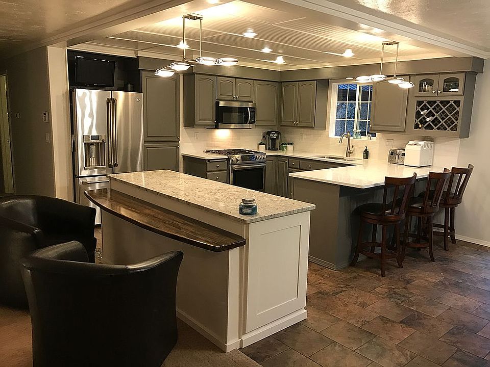 Beautiful 2,600 Sq.Ft. home on 1/2 acre close Riverside State Park and only 15 minutes to downtown Spokane. 5 bedrooms and 2 1/2 baths all newly remodeled with crown molding accents. Gorgeous kitchen with quartz and granite countertops, new stainless steel appliances, featuring (2) islands. Modern living room with new built in gas fireplace and recessed TV tile surround. 2-car attached garage with additional parking and large concrete driveway. Back yard is completely fenced with new 2,500 sq ft shop and private wooded views.