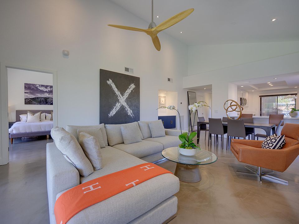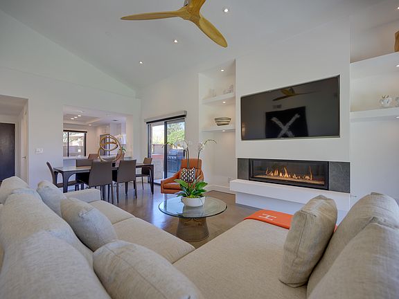 Views, Views, Views! Stunning contemporary remodel with the feel of new construction in the Lakeview Villas of prestigious Ironwood Country Club.One of only 8 lake front villas with direct mountain views. This villa is steps away from a recently renovated pool and spa. Polished concrete floors, custom Emser tile, stone quartz countertops, custom cabinetry, Blanco faucet, Kitchen Aid appliances, LED recessed lighting are all part of the recent remodel. Both bedrooms have ensuite bathrooms, walk in closet, oversized shower, all new millwork, hardware, window treatments, and an upgraded linear gas fireplace. This residence is a smart home including The Ring, Kasa smart lighting and Nest thermostat. HUGE lot per 2020 survey for expanding yard or an addition per HOA guidelines. HOA fee includes cable, HBO, high speed internet, roof, exterior paint, landscaping outside property walls and 24 hour guarded gate and security patrol.