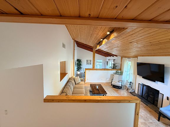 Open Concept Living: High vaulted ceilings with exposed wood beams and light-filled interiors create a warm, airy atmosphere.