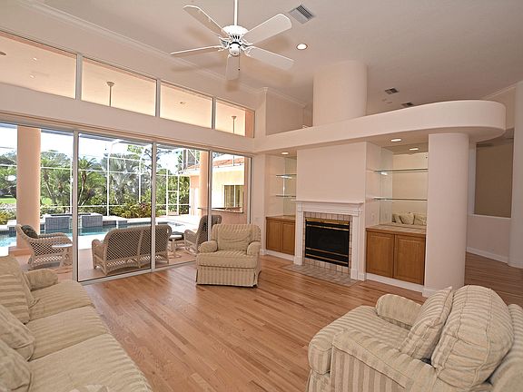 This rare one-owner home in the upscale Knightsbridge section of the University Park Country Club, was custom designed and offers a well-designed floor plan of 3400+ sf. Set on a picturesque water & golf course view lot encompassed by tropical landscape giving a perfect level of privacy. A circular drive, side load 2.5-car garage and solid wood double door entry opens to a tiled foyer and formal living with wonderful views of the expanded outdoor lanai, inground pool, spa and beyond. The split plan has 3 bedrooms, an office/den and 3.5 baths. Ongoing improvements and maintenance over the years including a new roof in 2012, pool resurface, a well-equipped outdoor kitchen, exterior and interior paint, added closet systems etc. Wood & tile floors, formal and causal living spaces, high ceilings, gas fireplace with side display shelves, full pocket sliders to lanai, separate laundry room with cabinetry and wet-sink, plenty of storage and built-in for office. Well worth the visit as the quality will not disappoint. University Park CC is a highly sought after gated golf community offering a variety of membership options that may include social, tennis, fitness, golf and a well-organized event and dining schedule. Just minutes to fine shopping, dining, theater, beaches and more.